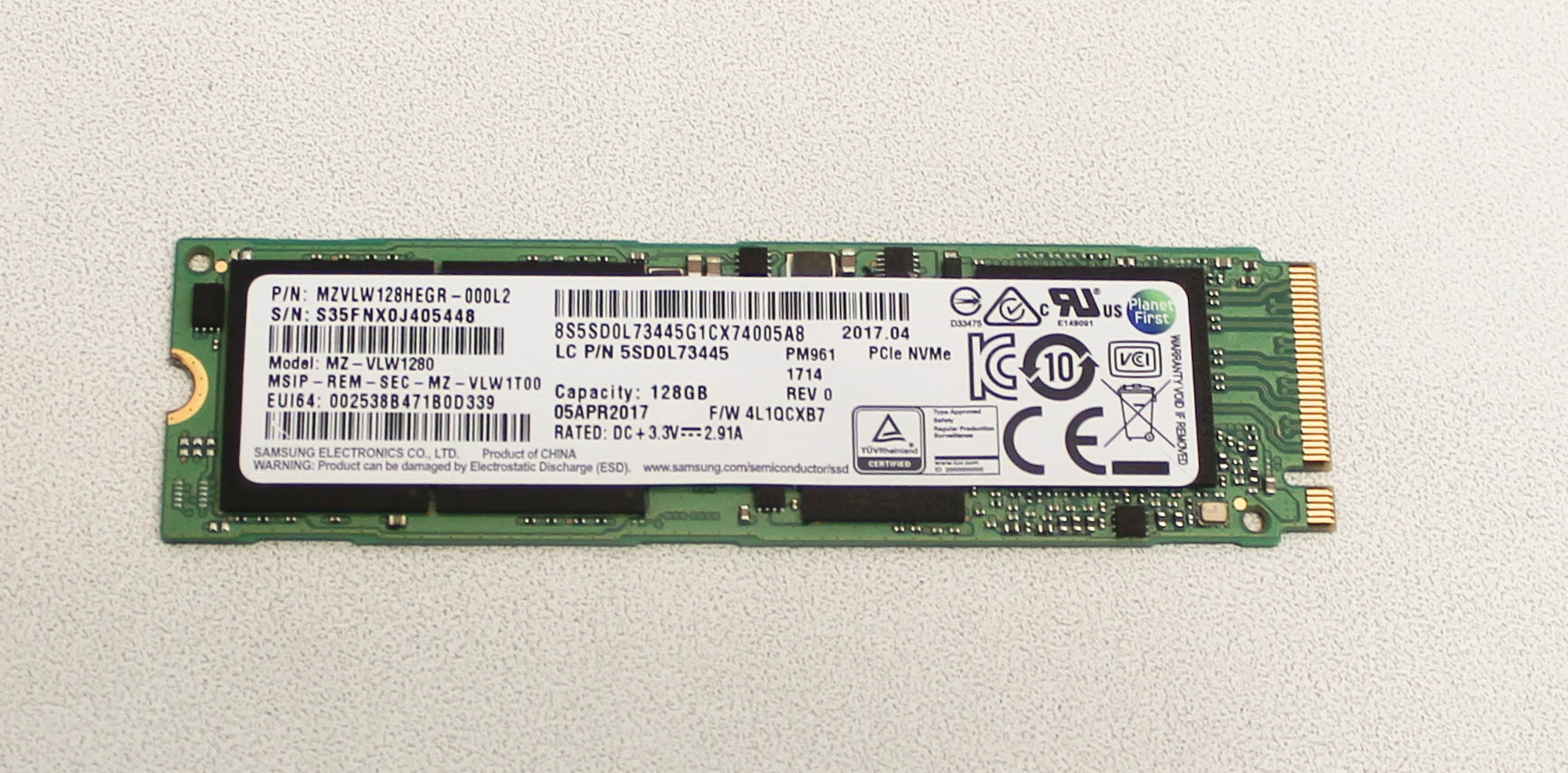 LENOVO 128GB SSD PM961 MZVLW128HEGR PCIE SOLID STATE DRIVE YOGA 720-13IKB
